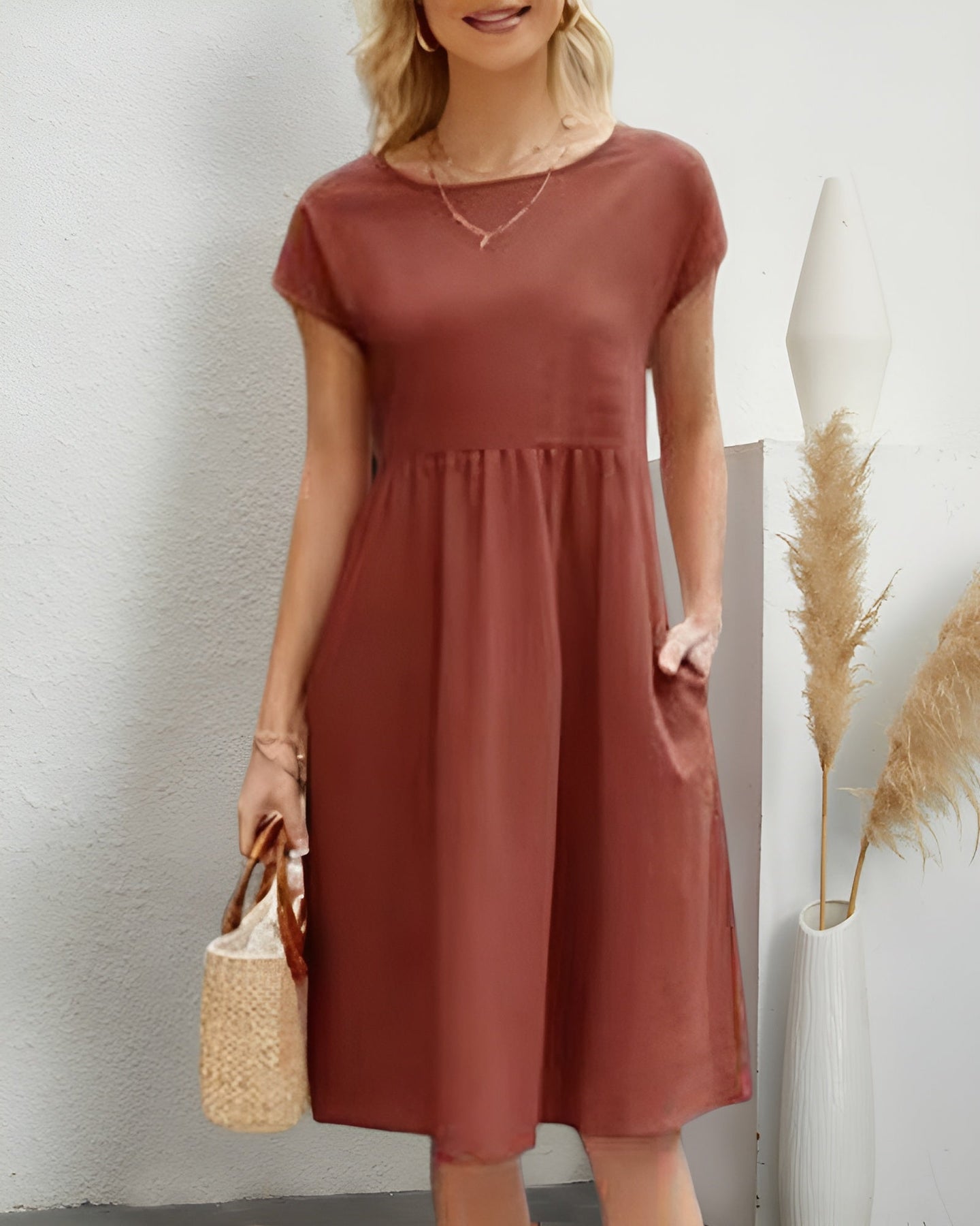 Questo abito ampio con scollo rotondo è uno di quei capi preferiti a cui torni sempre. Un taglio semplice ma un effetto straordinario. Il tessuto fluido, la lunghezza che valorizza la figura e la vestibilità femminile lo rendono perfetto per ogni giorno – che tu sia in giro, a un pranzo o semplicemente voglia sentirti comoda e radiosa.