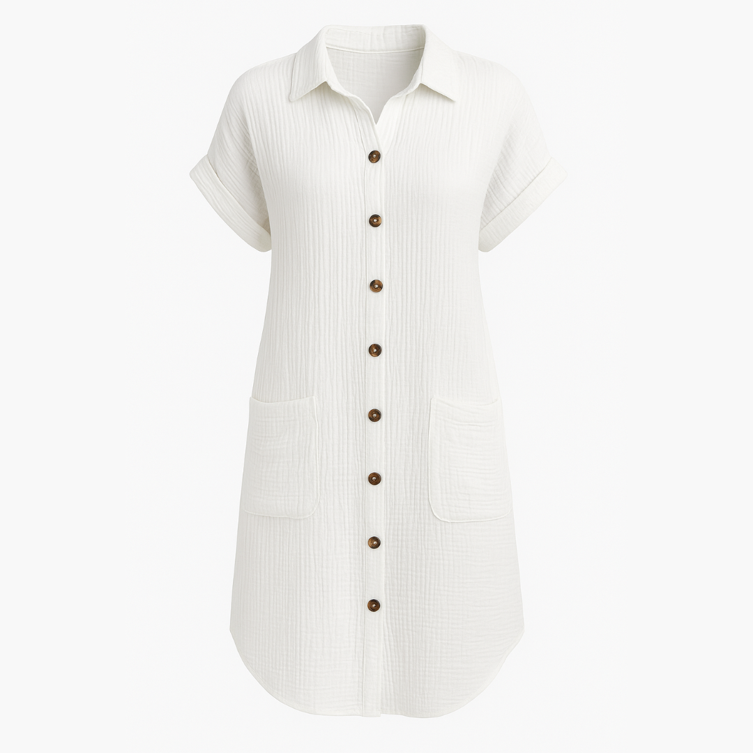 Questo vestito ti farà sentire sempre a tuo agio, sia sopra il costume da bagno che per un pranzo al sole. Ordina ora e inizia un’estate in cui brillerai.